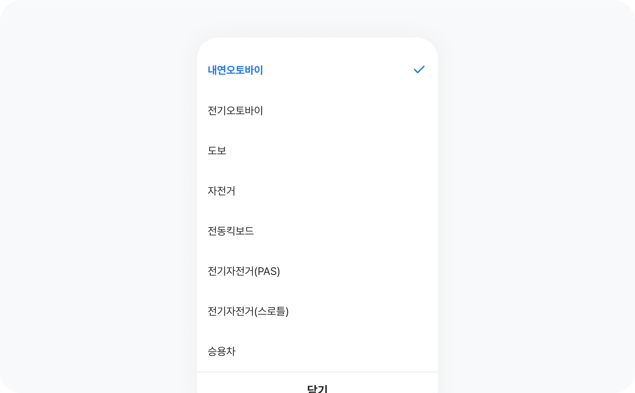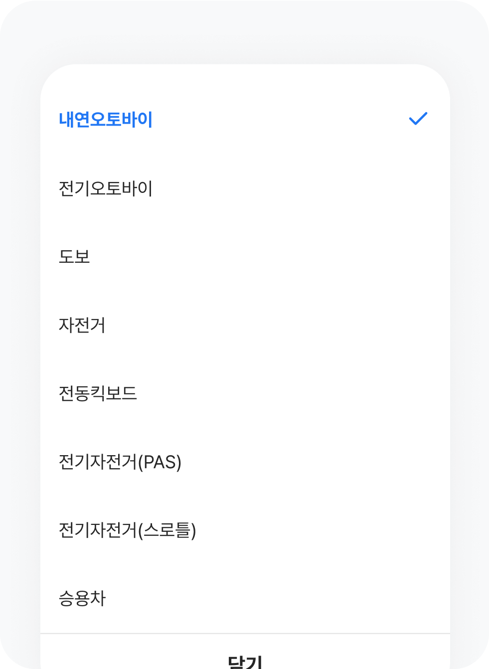나에게 맞는 이동 수단을 자유롭게 선택하세요.